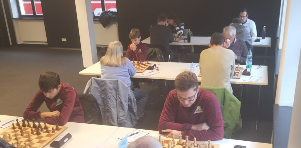 In der Zwischenzeit hatte sich Robin mit einer schönen Kombination gleich zwei Mehrbauern ergaunert und spielte das konzentriert bis zum Punktgewinn zu Ende.