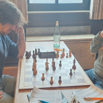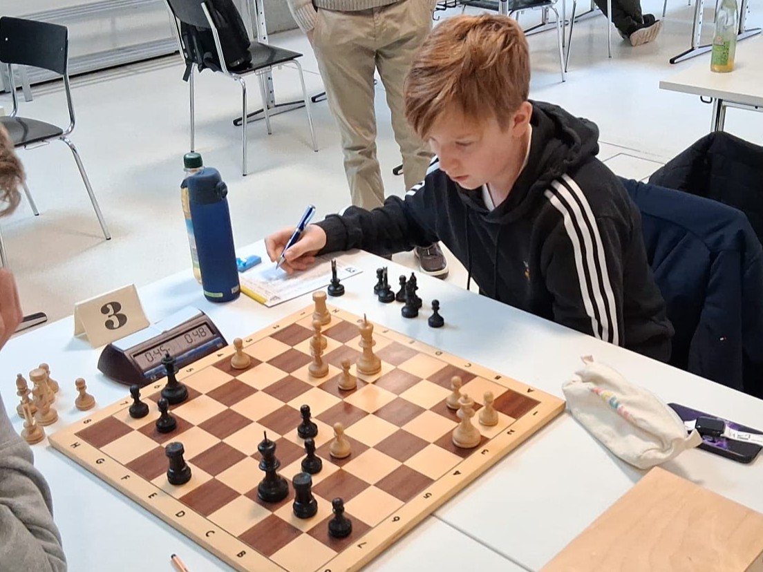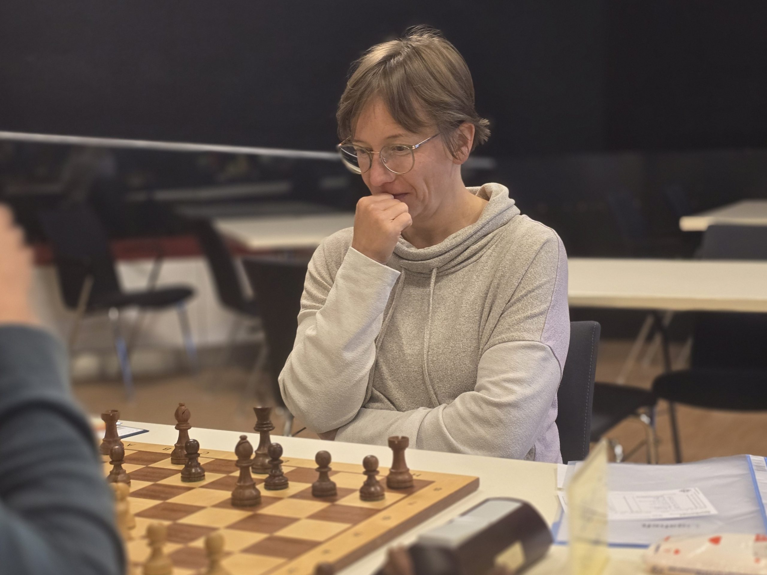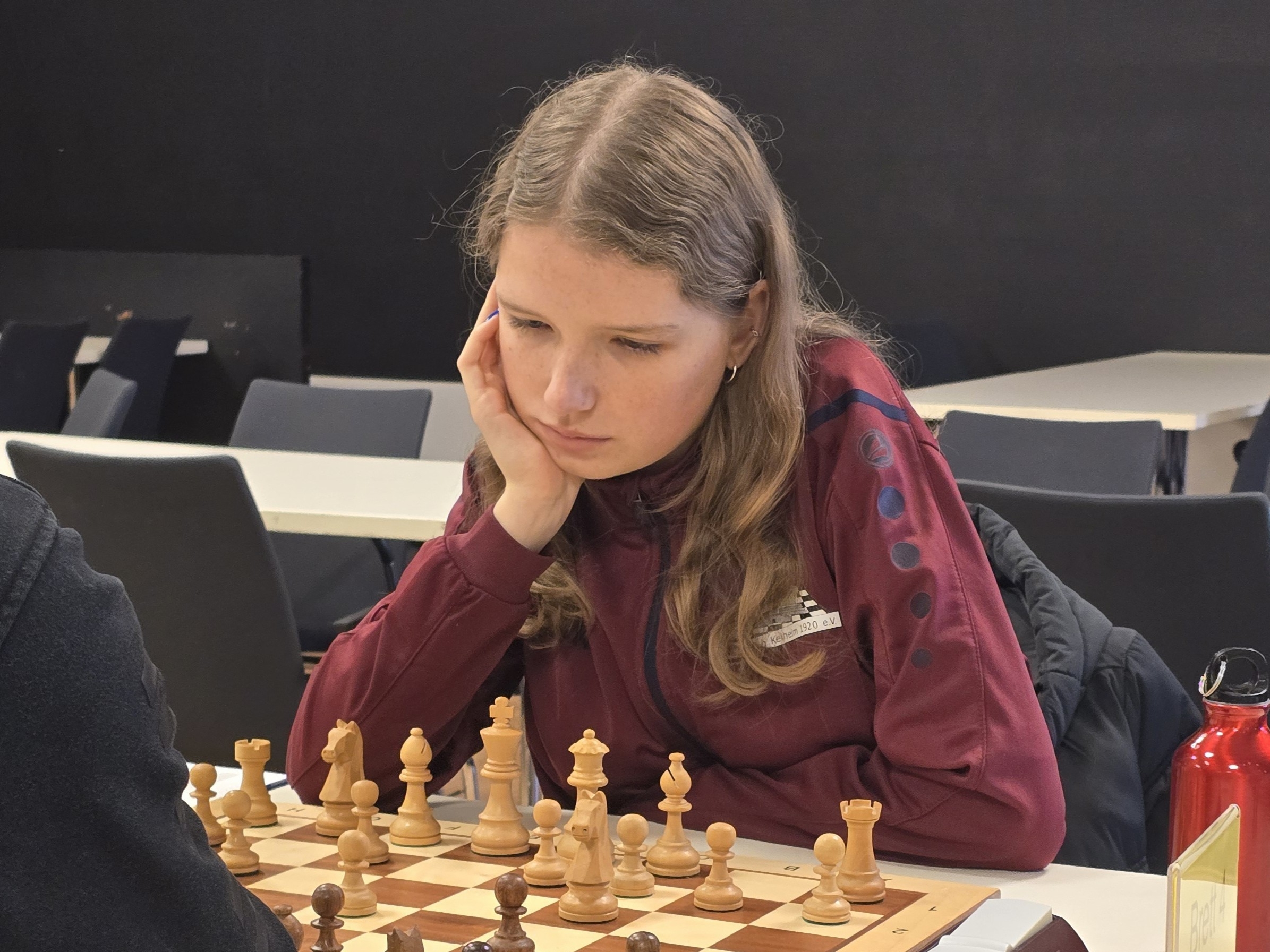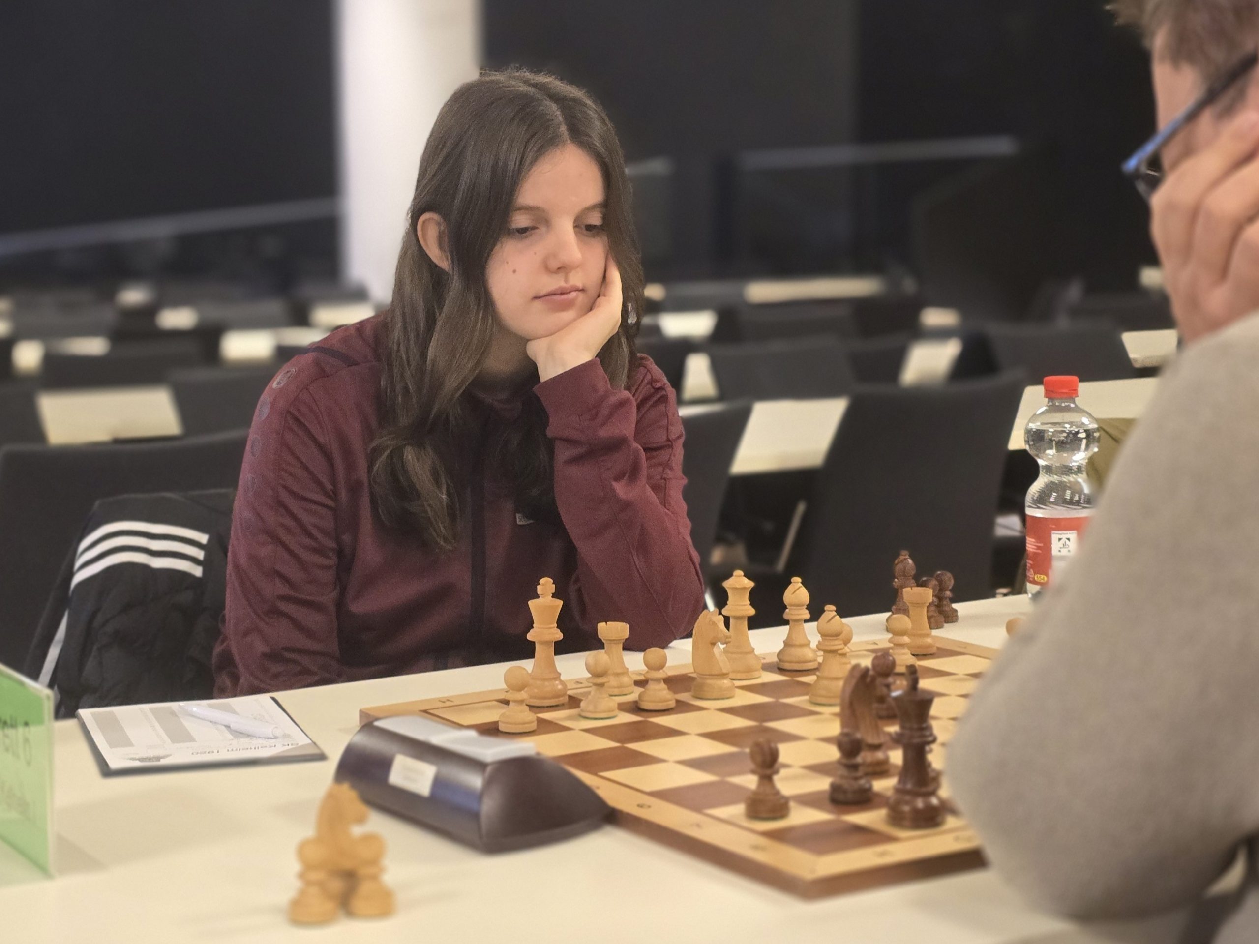 Nach etwa eineinhalb Stunden stand auf Brett 1 das erste Ergebnis fest, Joshi und sein Gegner waren in einer Theorievariante bis kurz vor dem 20. Zug unterwegs, ehe sie sich zur Punkteteilung einigten. Auch hier geschah im Anschluss lange nichts nennenswertes, nach gut zwei Stunden Spielzeit gewann Eva durch eine Taktik eine Qualität, scheinbar war ihr Gegner derart frustriert, dass er direkt aufgab.