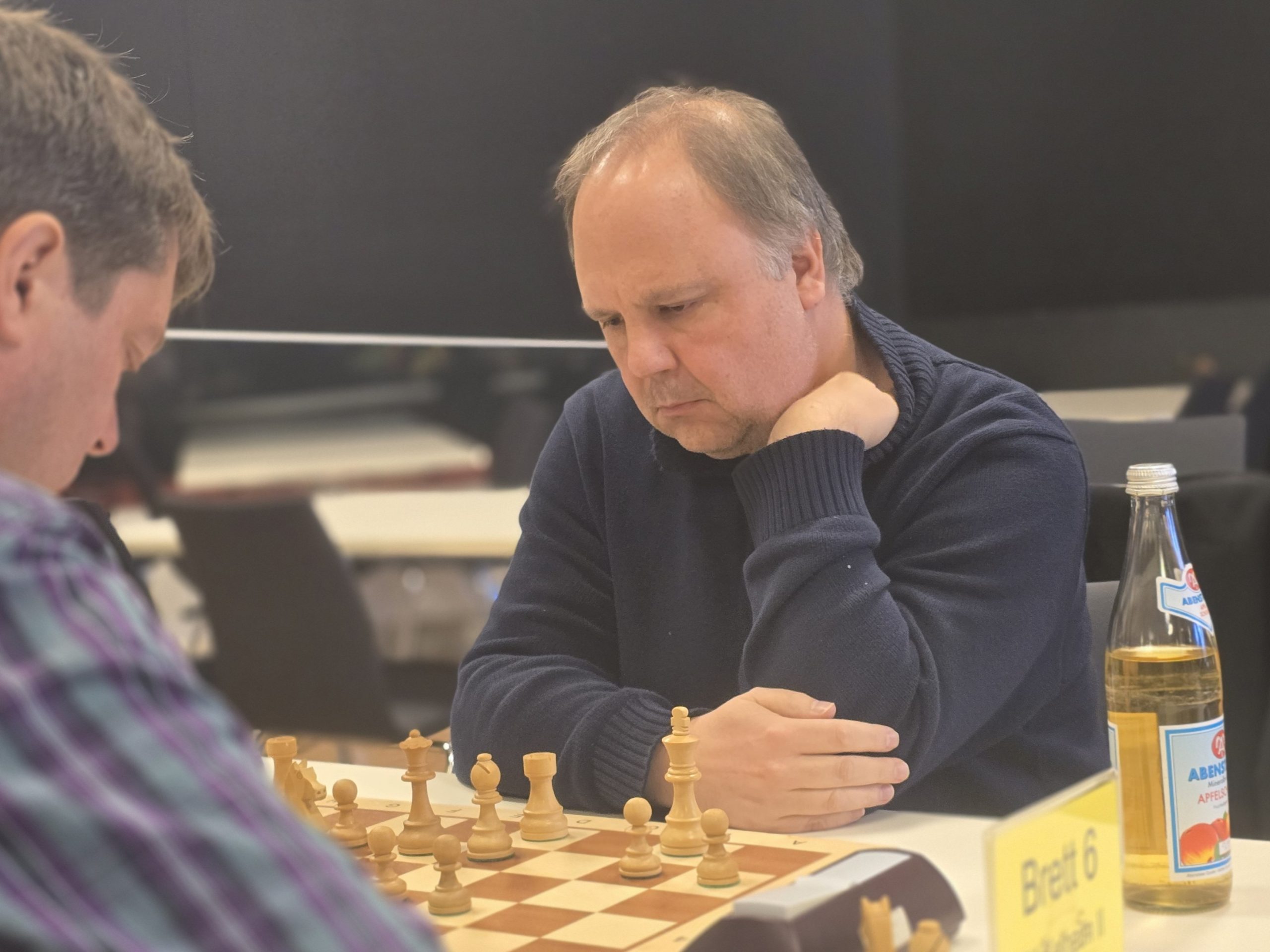An den Brettern 1-3 hatte der Gegner schweres Geschütz aufgefahren, ein FM und zwei IM´s bedeutete für diese Bretter gleichzeitig die Topbesetzung mit den Spielern 1-3 der Schwandorfer Setzliste. Umso erfreulicher war es, dass nach gerade einmal einer knappen dreiviertel Stunde, das erste Ergebnis feststand, denn Giesi einigte sich früh in der Partie mit seinem Gegner auf ein Remis. Im Anschluss passierte lange Zeit über nichts, auch das ist ja für dieses Spielniveau nicht unüblich. Nach einer Spielzeit von 2,5 Stunden endete auch die zweite Partie mit einer Punkteteilung, Hase vereinbarte ebenfalls mit seinem Gegner ein Remis.
