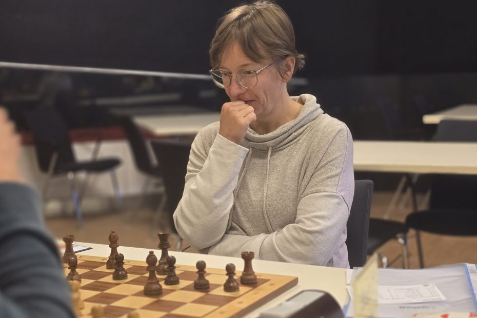 Dann ging es verhältnismäßig „Schlag auf Schlag“, wenig später war die Partie von Helmut urplötzlich zu Ende. Er stand bereits aus der Eröffnung heraus unter Druck, konnte seine Stellung in der Folge nicht stabilisieren und musste sich geschlagen geben. Für die verbliebenen Spieler Bernhard, Floh, Corni, Laura und Heinrich erhöhte sich dadurch natürlich der Druck, um einen Mannschaftssieg zu holen, mussten noch mindestens 3,5 Punkte zusammenkommen. Ziemlich genau eine Stunde nach dem Verlust von Helmut eröffnete Corni die Aufholjagd und glich zum zwischenzeitlichen 2:2 aus.