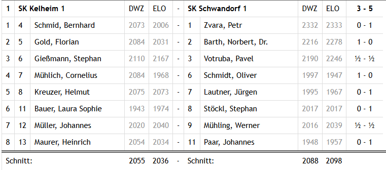 Auch in der Folge lieferte MF Johannes über den Chat keine guten Nachrichten, Helmut verlor seine Partie ebenfalls, somit war die Begegnung auch hier bereits vorzeitig entschieden, leider allerdings zu Gunsten der Gastgeber Bavaria Regensburg.