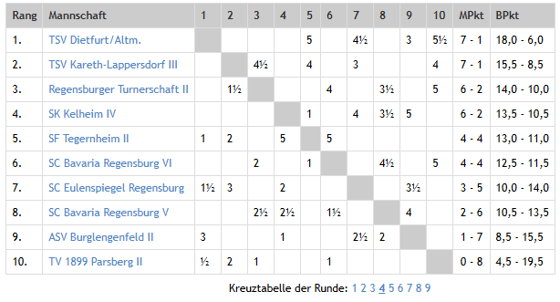 Mit dem 3,5:2,5-Erfolg stand ein knapper, aber verdienter Mannschaftssieg gegen einen Tabellennachbar fest, der die Lage der vierten Mannschaft in der Tabelle weiter festigt. Die Winterpause verbringt das Team auf dem 4. Platz.
