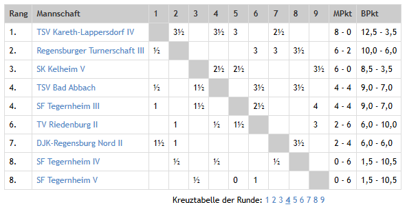 Von der vergangenen Runde 4 berichten diesmal jeweils die Mannschaftsführer Florian Gold, Eva Engl, Johannes Obermeier und Robin Lindner.