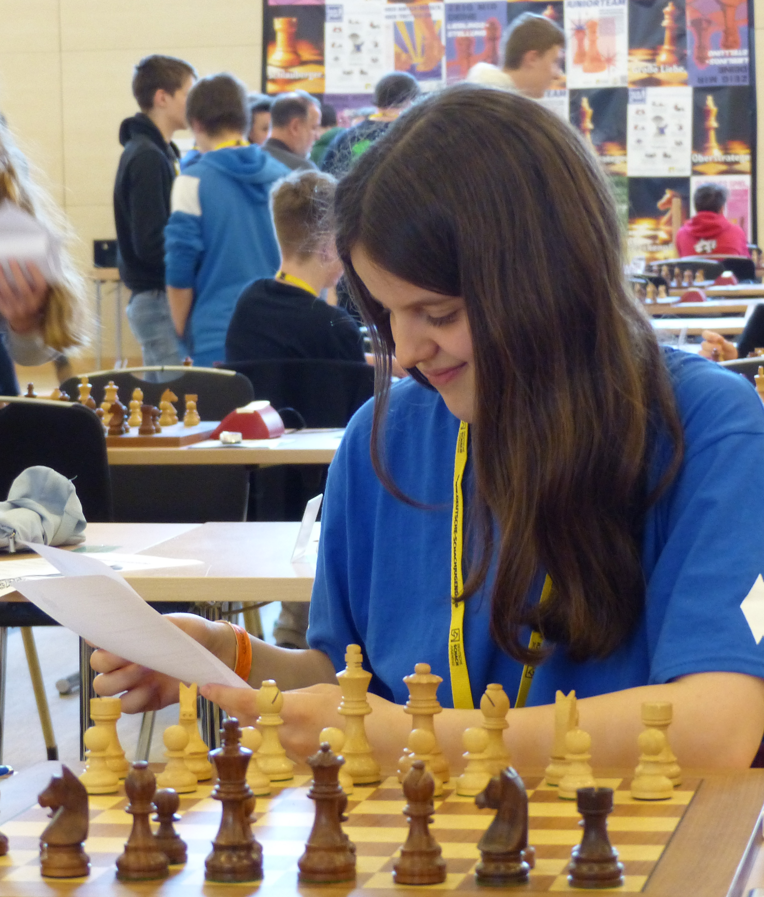 Laura ist mittlerweile auch fertig. Bei ihr ist es ebenfalls Remis geworden, nachdem sie lange Zeit einen Bauern in Rückstand lag.