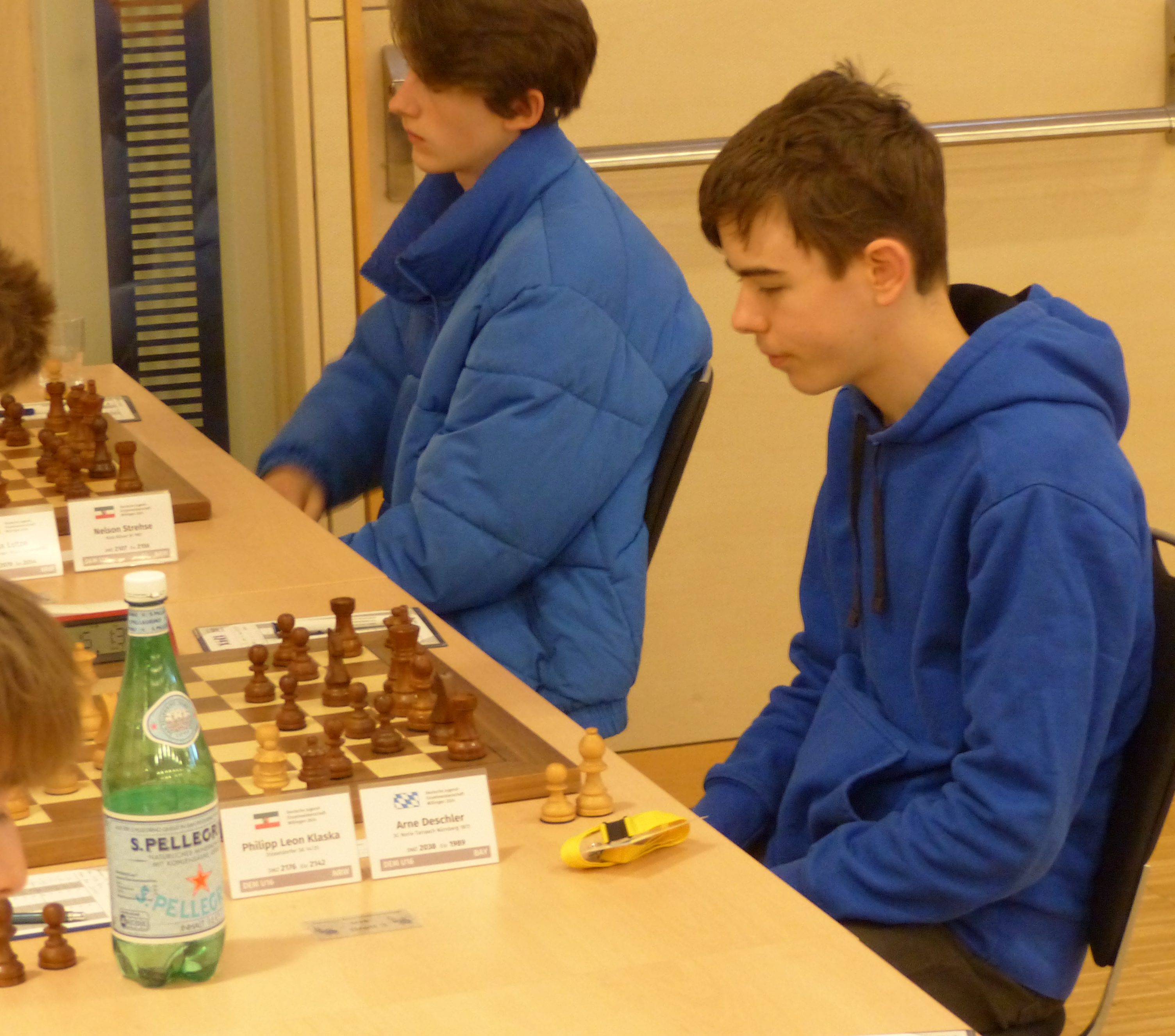 In der U16 ist mit Arne Deschler noch ein weiteres SK-Mitglied am Start. Allerdings ist Arne für seinen Heimatverein SC Noris-Tarrasch Nürnberg gemeldet und somit nicht direkt als SKKler auszumachen. Dennoch wollen wir ein Auge auf ihn haben. Er kam als Bayerischer Vizemeister ins Starterfeld, ist aber trotz über 2000 DWZ in seiner AK nur im hinteren Drittel gesetzt. Was für eine Gegnerstärke auf Bundesebene! Aber so kann er völlig frei aufspielen.