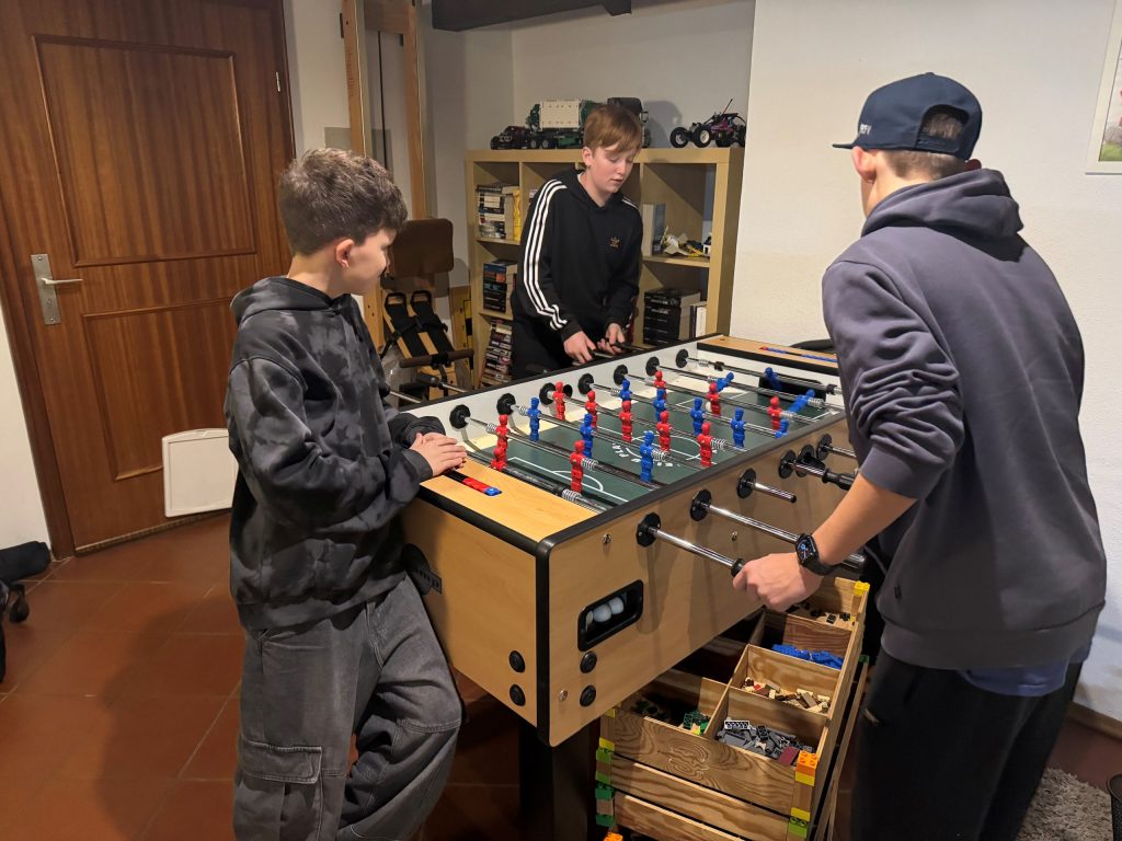 Die Abende wurden jeweils in geselliger Runde gemeinsam bei Familie Blodig verbracht, wo auch ein Großteil der Kelheimer in diesem Jahr wieder zu Gast sein durfte. Nach dem Abendessen wurden die restlichen Partien des Tages analysiert und die ein oder andere Blitzpartie gespielt. Diejenigen, die erstmal genug vom Schach hatten, nutzten die Abendstunden für einige schachfremde Spiele oder auch um Neuigkeiten und Themen aus den beiden Vereinen auszutauschen. Natürlich stand auch der hauseigene Kicker nicht still, sobald am Abend wieder Trubel im Haus war.