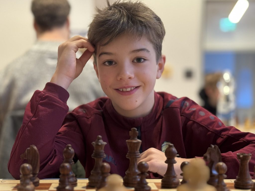 Ebenfalls mit fünf Punkten marschierte Theodor Nickel souverän durch das gesamte Turnier. In der Endrangliste war er dabei bis Platz 35 der Spieler mit der niedrigsten DWZ – ein Umstand, der seine starke Leistung noch eindrucksvoller macht. Theodor spielte in jeder Partie mutig und stark auf und sammelte vier seiner Punkte gegen Gegner, die jeweils mindestens 250 DWZ-Punkte mehr aufwiesen. Auch er bekam es in einer Runde mit Corni’s FM-Gegner zu tun. In dieser Partie hielt er lange Zeit hervorragend dagegen, ließ seinen Gegner kaum zur Entfaltung kommen und gehörte mit seiner Begegnung zu den letzten laufenden Partien der 6. Runde. Zwar sprang am Ende nichts Zählbares heraus, doch die Erfahrung, gegen einen Titelträger gespielt zu haben, war sicher ein wertvoller Gewinn. Mit seiner beeindruckenden Leistung zeigte Theodor deutlich, welchen großen Fortschritt er in den letzten Monaten gemacht hat. Sein 24. Platz im Endklassement spricht für sich: Er ließ zahlreiche Teilnehmer mit teils deutlich über 1800 DWZ hinter sich. In Zahlen bedeutet das einen riesigen DWZ-Sprunggestartet mit 1487, erreichte er eine Turnierleistung von 2026 DWZ und ein Plus von satten 160 Punkten. Damit rückt er in der SKK-DWZ-Rangliste auch Papa Thomas gefährlich nahe: Nur noch rund 100 Punkte und acht Plätze trennen die beiden. Vielleicht ist das ja die zusätzliche Motivation, in der kommenden Jugendsaison richtig durchzustarten 😉.