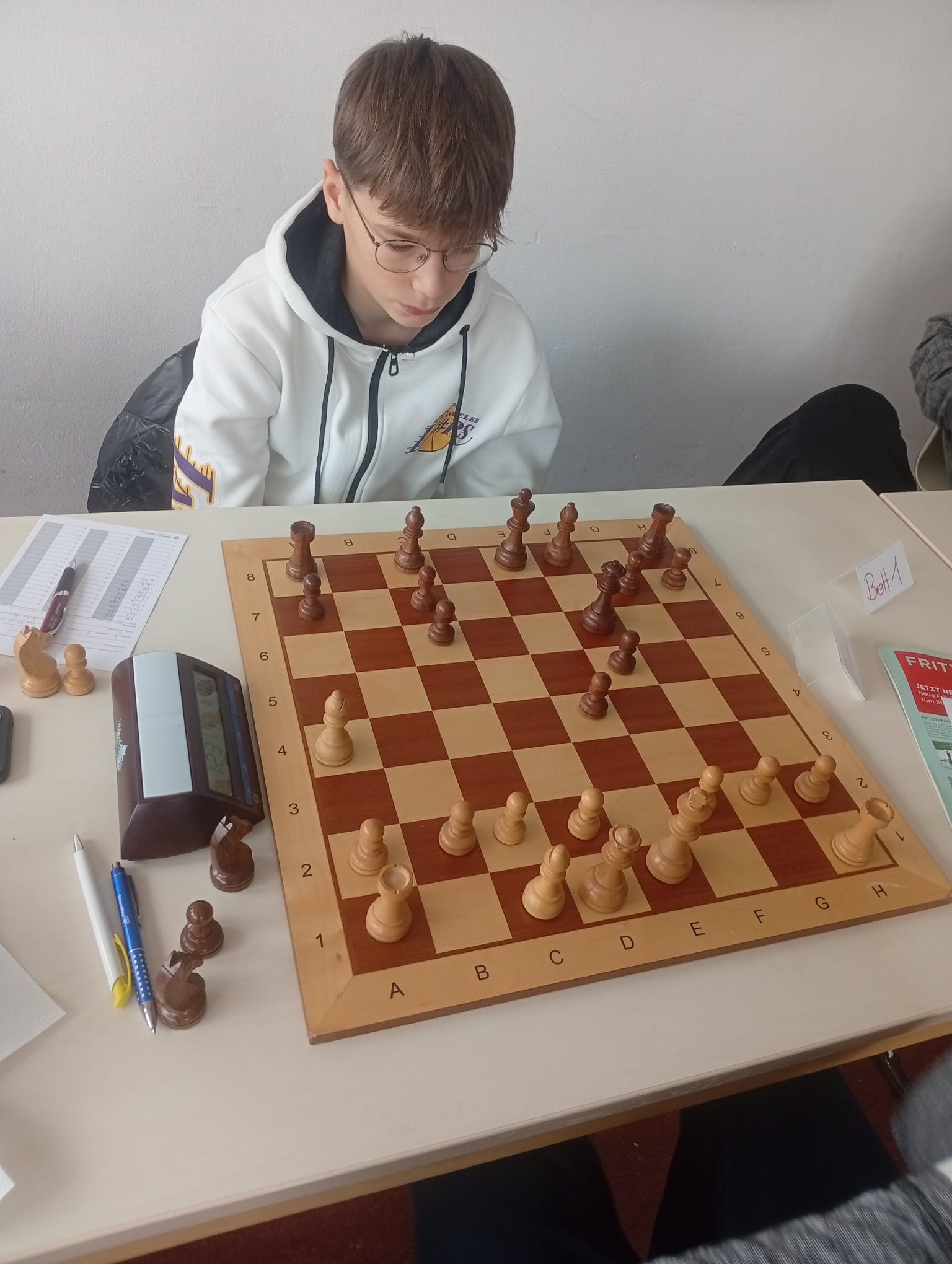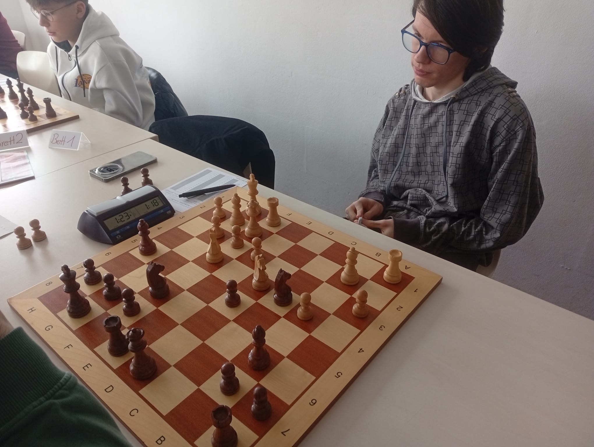 Für diesen Spieltag musste Mannschaftsführer Robin keinen einzigen Spieler nach oben abgeben und konnte zusätzlich sogar auf Akteure der dritten Mannschaft zurückgreifen, die am letzten Sonntag spielfrei hatten. Entsprechend stark war die Aufstellung für das Duell gegen Burglengenfeld: Michael Gold, Konstantin Neumeier, MF Robin Lindner, Anton Kliegl, Leonhard Neumeier und Maximilian Buchhammer. Bereits vor Beginn der Partie führte Kelheim mit 1:0, da Burglengenfeld krankheitsbedingt nur zu fünft antreten konnte. Kurioserweise gab es nach der Begrüßung jedoch eine unerwartete Zwangspause: Die Schachuhren waren beim vorherigen Spieltag versehentlich im Spiellokal der ersten Mannschaft von Burglengenfeld liegen geblieben und wurden nicht rechtzeitig zurückgebracht. Bis die „Eil-Lieferung“ mit den Uhren aus dem anderen Spielort eintraf, wurde die Zeit noch für das ein oder andere Gespräch unter den Spielern genutzt.