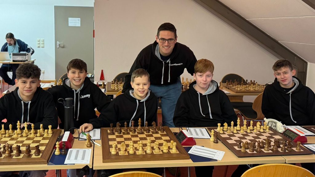 Ein weiterer Erfolg gegen die SG Leipzig brachte das Team endgültig in Schlagdistanz zu den Spitzenplätzen. In der Schlussrunde wartete mit dem bislang ungeschlagenen SC Königsjäger Süd-West der Turnierfavorit. Nach zwischenzeitlichem 0:2-Rückstand sorgte Leni am Spitzenbrett nach über fünf Stunden Spielzeit für den entscheidenden Sieg im komplexen Endspiel mit Dame gegen Turm und Läufer – das 2:2 Remis war auch hier perfekt.